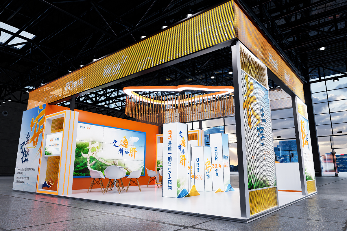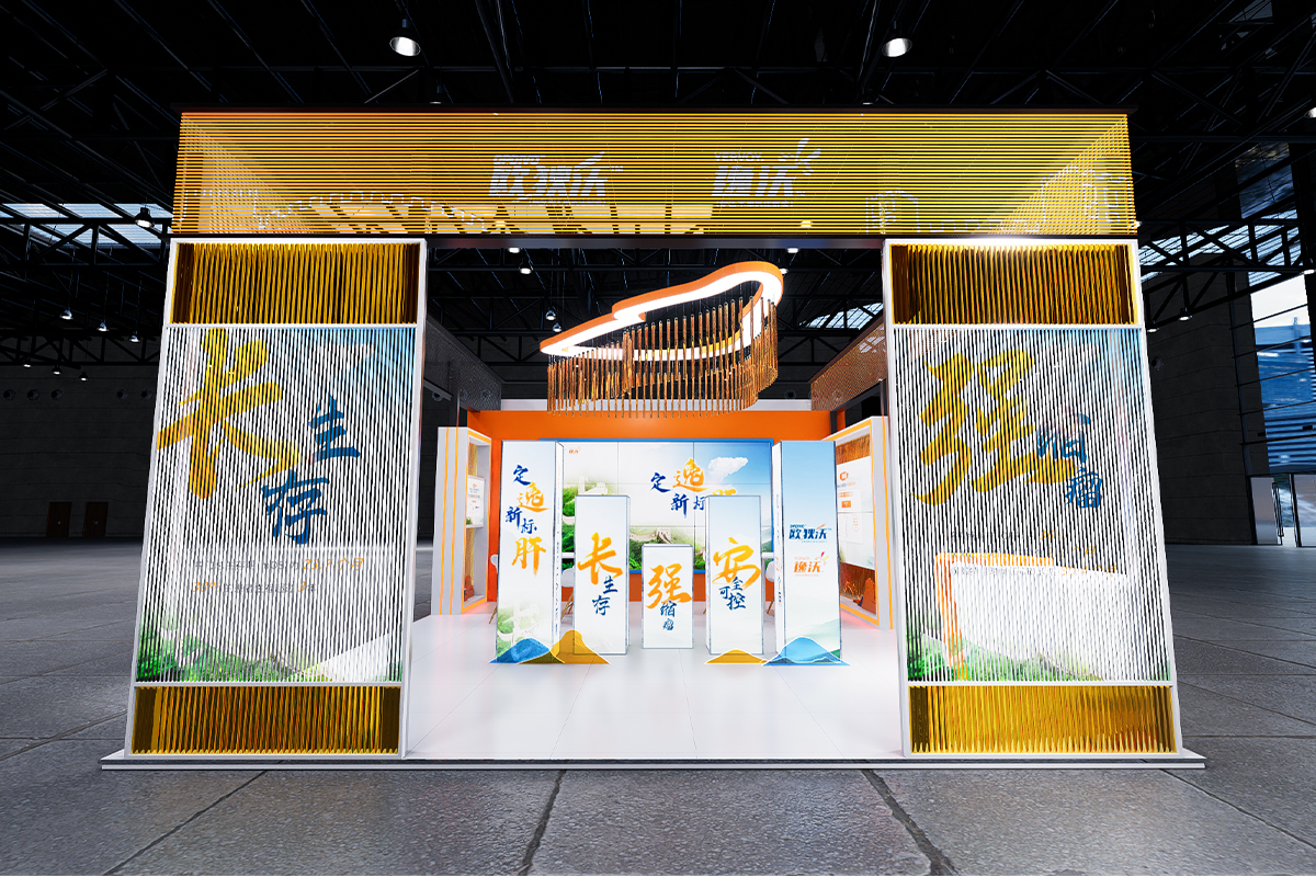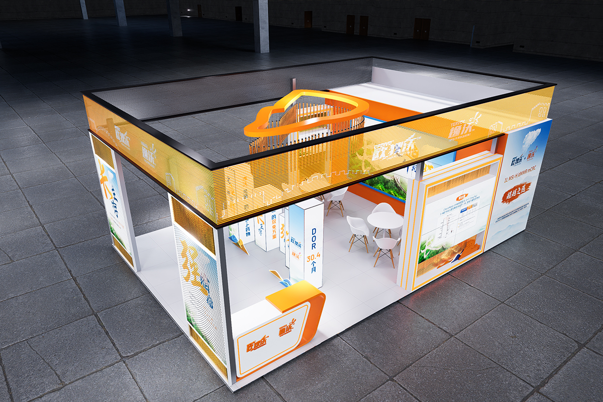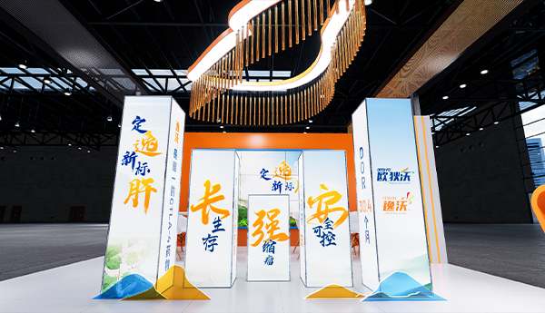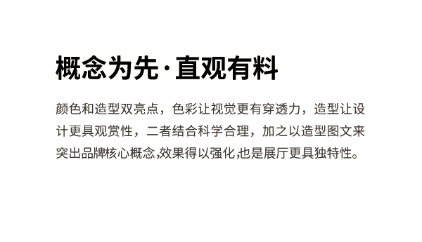 • <展台设计><展位设计>颜色和造型双亮点,色彩让视觉更有穿透力,造型让设计更具观赏性,二者结合科学合理,加之以造型图文来突出品牌核心概念,效果得以强化,也是展厅更具独特性。