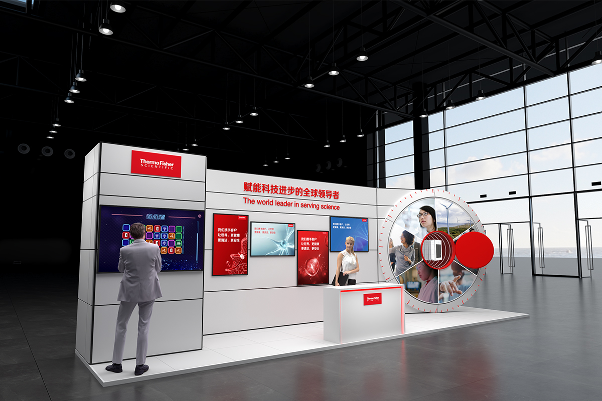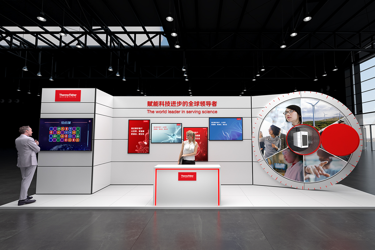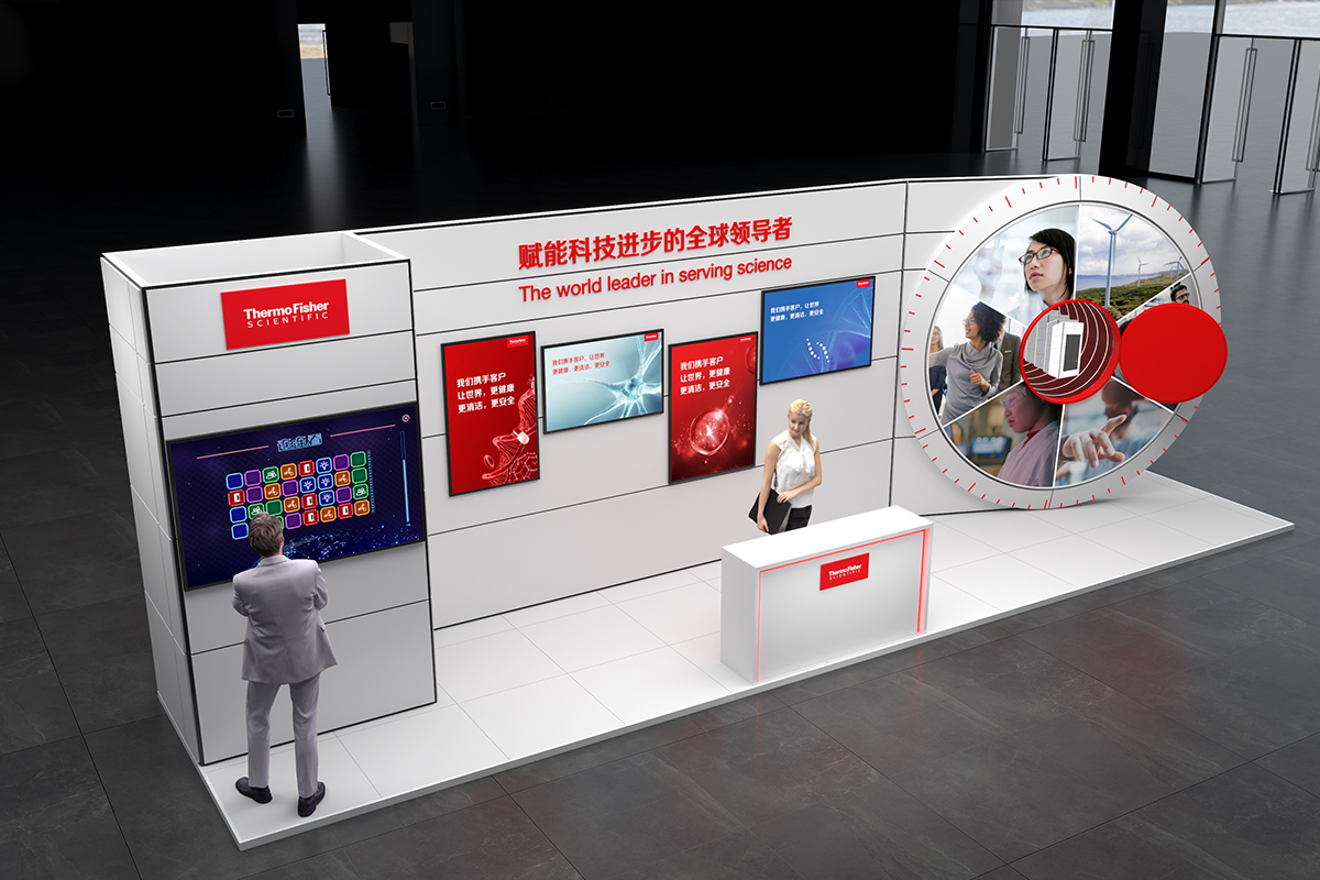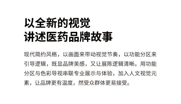 <展台设计>现代简约风格,以画面来带动视觉节奏,以功能分区来引导逻辑,既显品牌美感,又让展陈逻辑清晰。用功能分区与色彩导视串联专业展示与体验,加入人文视觉元素,让品牌更有温度,然受众群体更易接受。