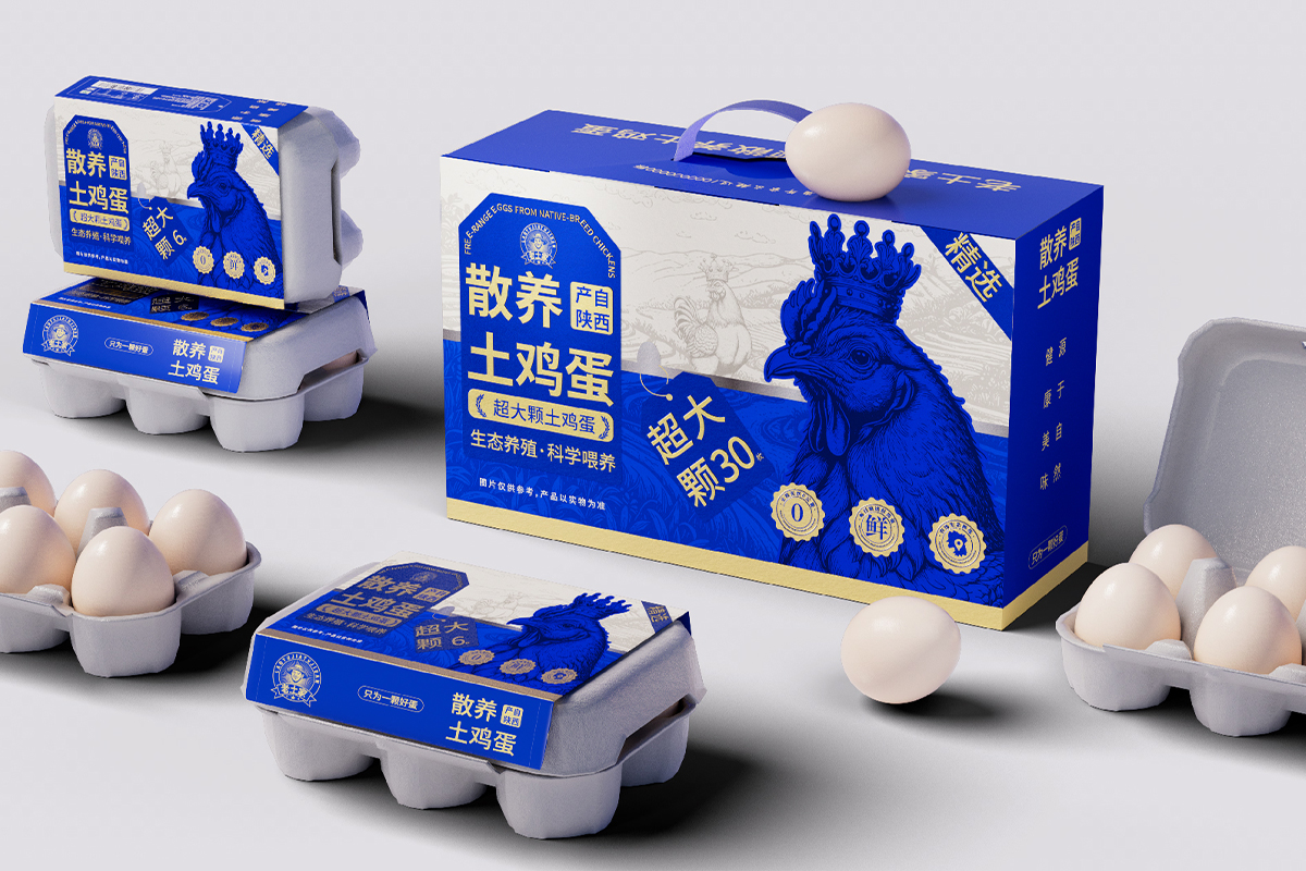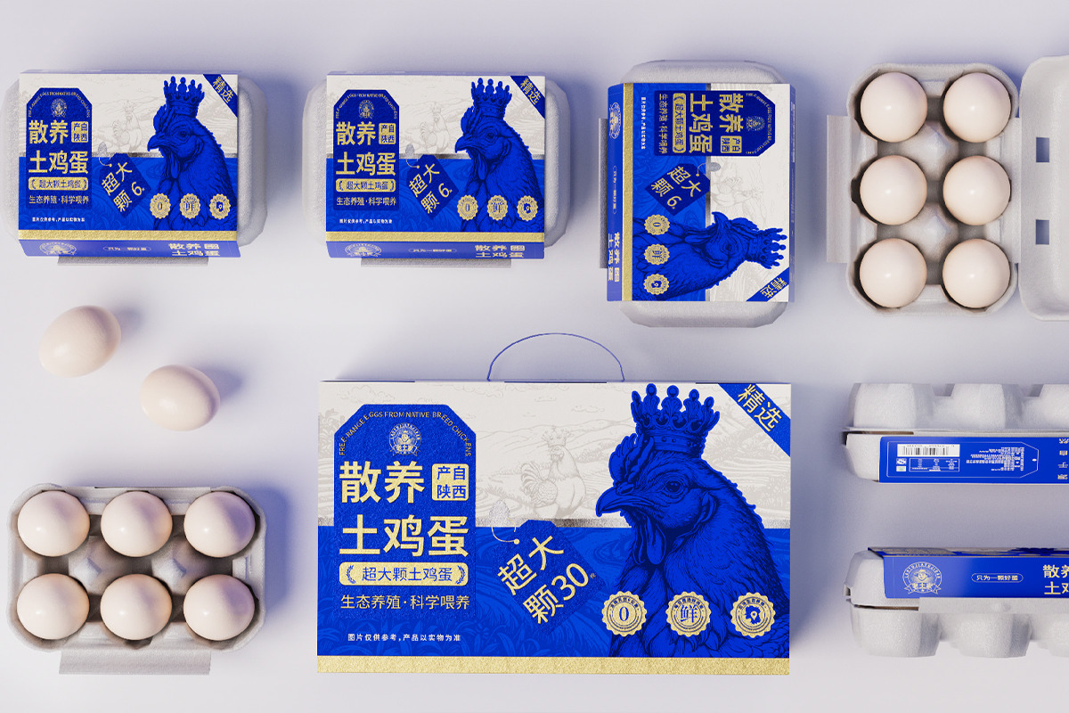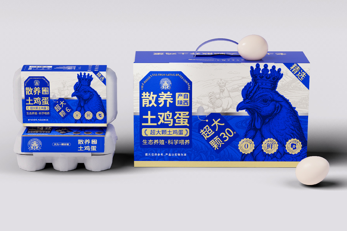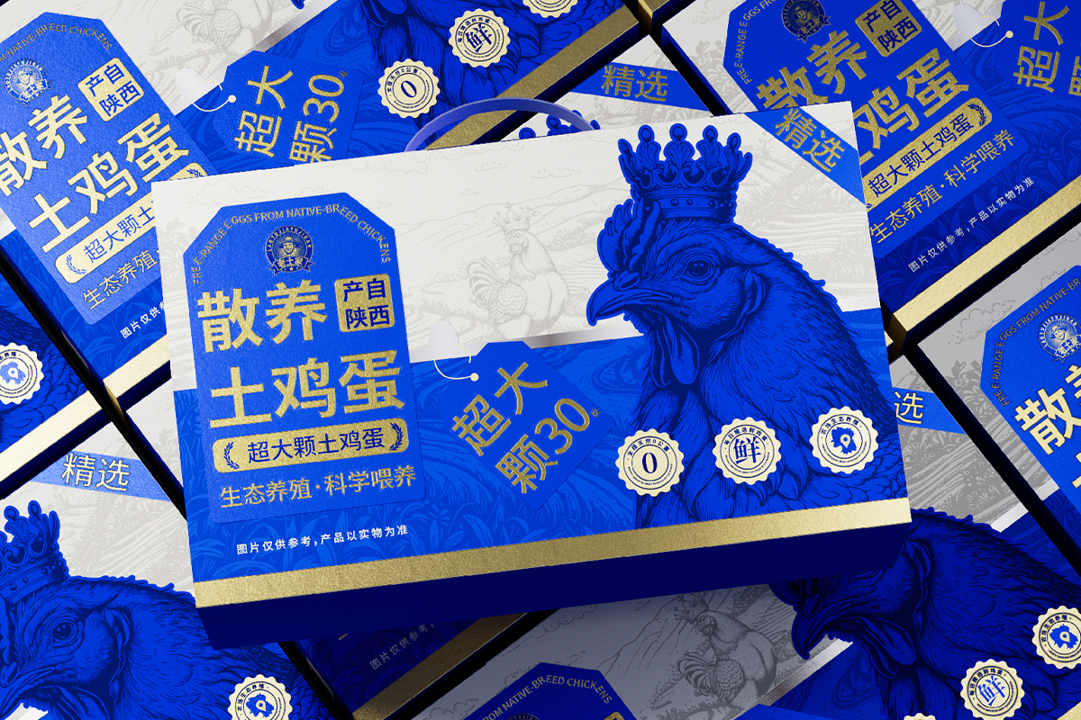 <包装盒设计>我们的主视觉描绘了一只神气活现的土鸡,头戴一顶“皇冠”。这并非真正的王权象征,而是自然与品质授予它的荣耀。“土”是它的根基--代表着回归本真、自由散养的生活方式;“皇冠”是它的品质--代表着在同类产品中出类拔萃、至高无上的新鲜与营养。